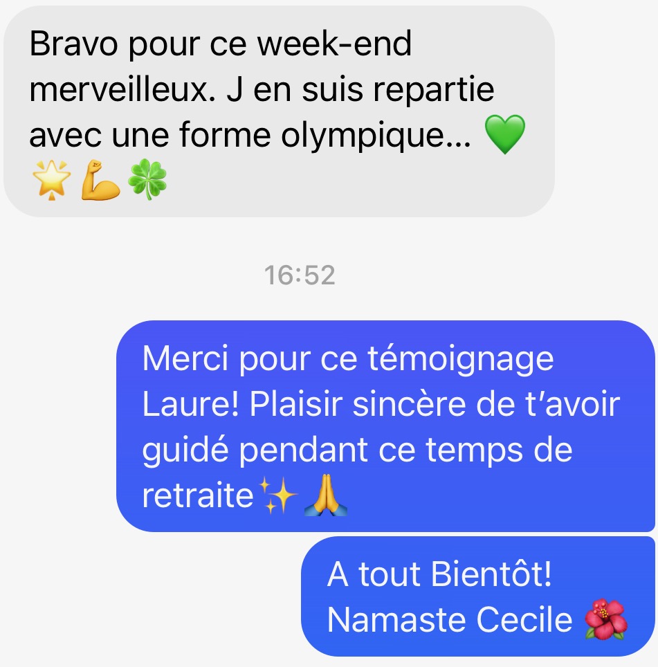 Vous repartirez léger de corps et d’esprit et enrichis d’un savoir essentiel à un bon fonctionnement physiologique et émotionnel.