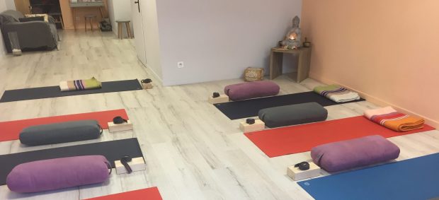 Sont à disposition gratuitement au studio tapis, couvertures, bolsters, sangles, briques et chaises.